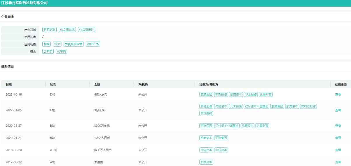 新元素医药融资信息&企业画像
