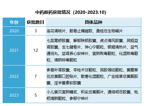 备注:2020年1月至2023年10月之间获批的中药新药