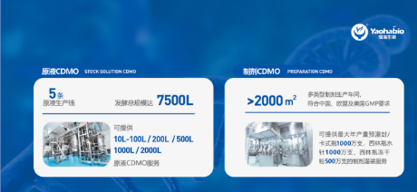 为了顺应生物药行业日益激增的需求,在资本助力下,耀海生物产能得到了大幅扩充。公司是国内为数不多同时兼具大规模原液和多种剂型无菌制剂生产服务能力的CRDMO企业。目前公司建设有符合GMP要求的5条微生物发酵和纯化的成熟生产线,可提供10L-100L、200L、500L、1000L及2000L等规模的原液CDMO服务,发酵总规模达7500L。公司还拥有2条无菌制剂生产线,覆盖西林瓶冻干/水针以及预灌封/卡式瓶等多种剂型。