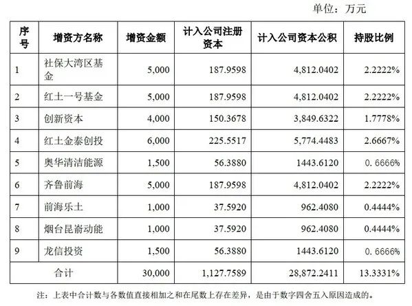 本次增资扩股各投资人出资认缴公司注册资本、计入公司资本公积、持股比例如下:
