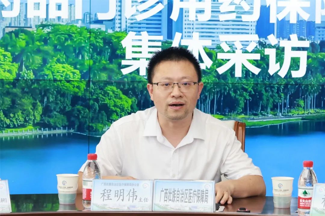 自治区医保局办公室主任程明伟、医药服务管理处二级调研员梁丽军,我院副院长程继文、医务部副部长吴向华、神经内科主任吴原、药学部副主任张宏亮参加媒体见面座谈会。