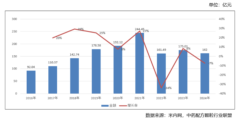 自2021年中药配方颗粒市场达到244.45亿元高峰后,近年其市场规模逐步减小。此前有业内声音认为,零加成后,中药配方颗粒市场或将进一步萎缩。