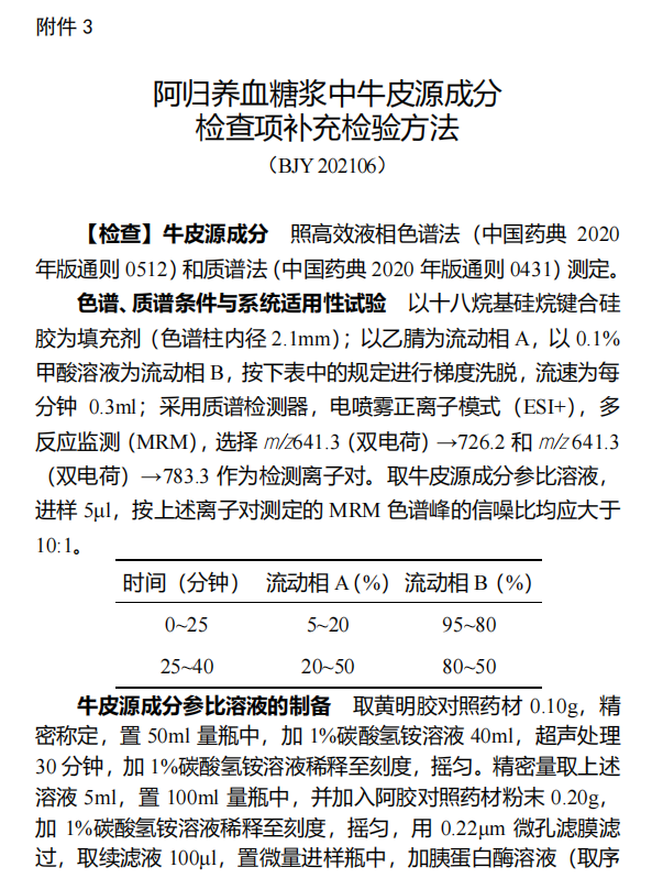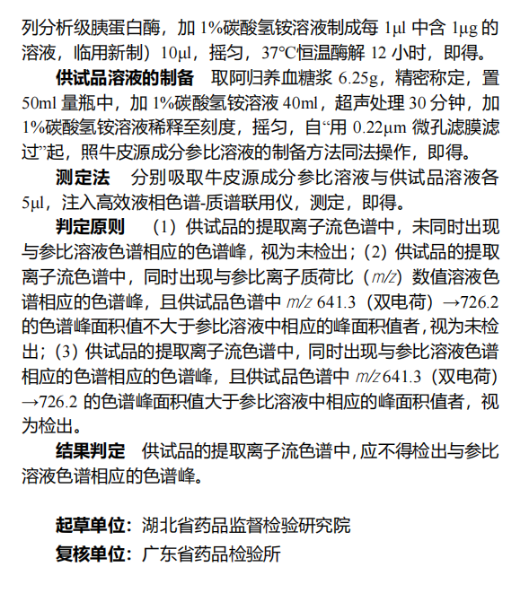 3.阿归养血糖浆中牛皮源成分检查项补充检验方法