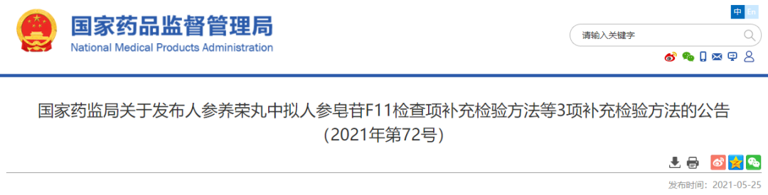 根据《中华人民共和国药品管理法》及其实施条例的有关规定,《人参养荣丸(大蜜丸、小蜜丸、水蜜丸)中拟人参皂苷F11检查项补充检验方法》《风痛安胶囊中马兜铃酸I成分检查项补充检验方法》和《阿归养血糖浆中牛皮源成分检查项补充检验方法》经国家药品监督管理局批准,现予发布。