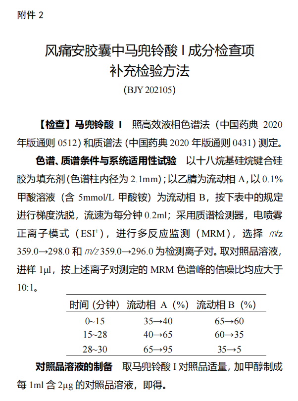 2.风痛安胶囊中马兜铃酸I成分检查项补充检验方法
