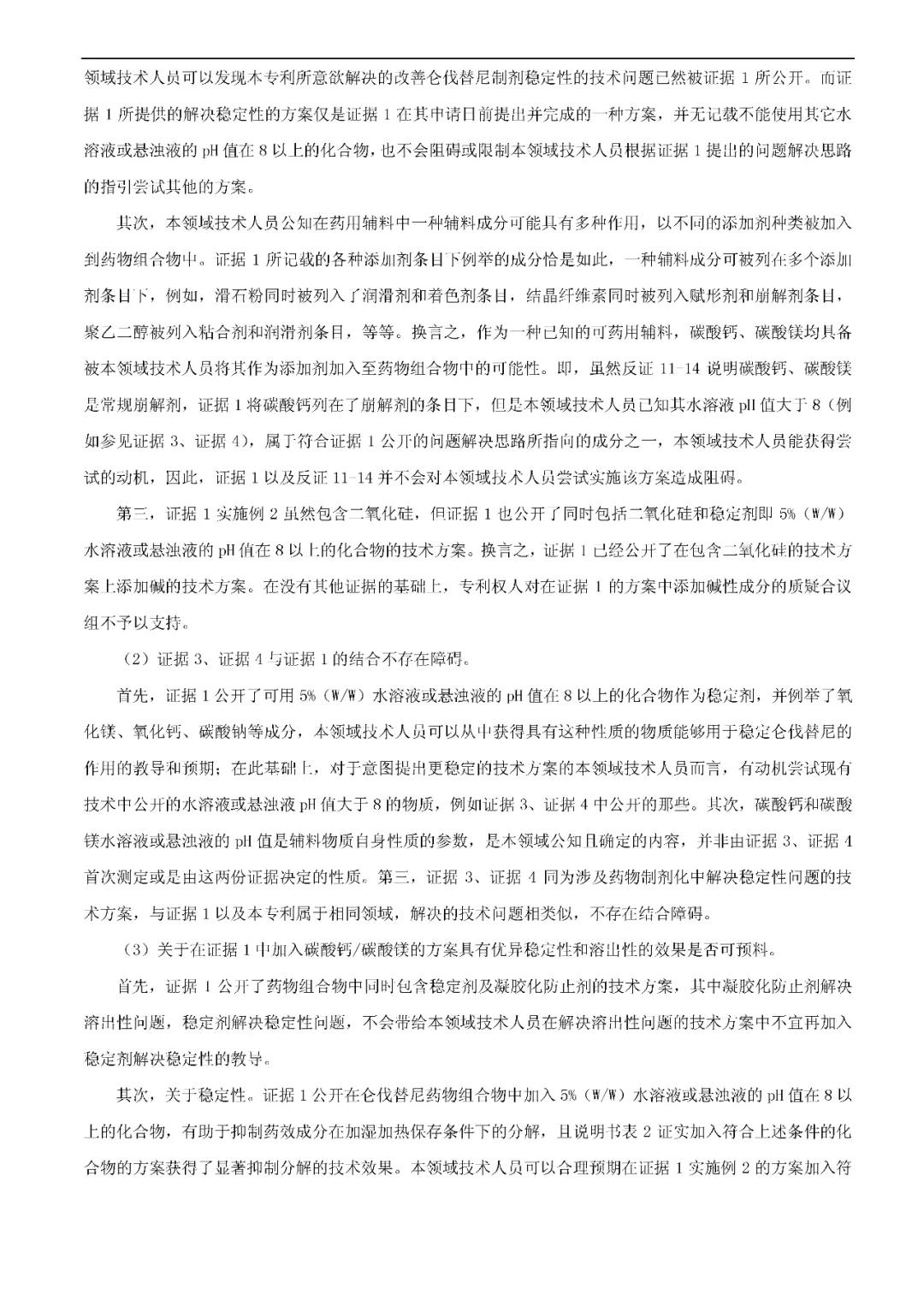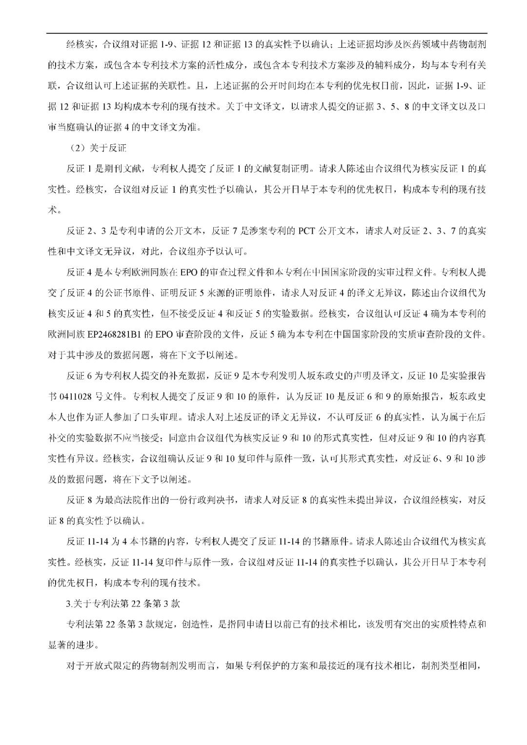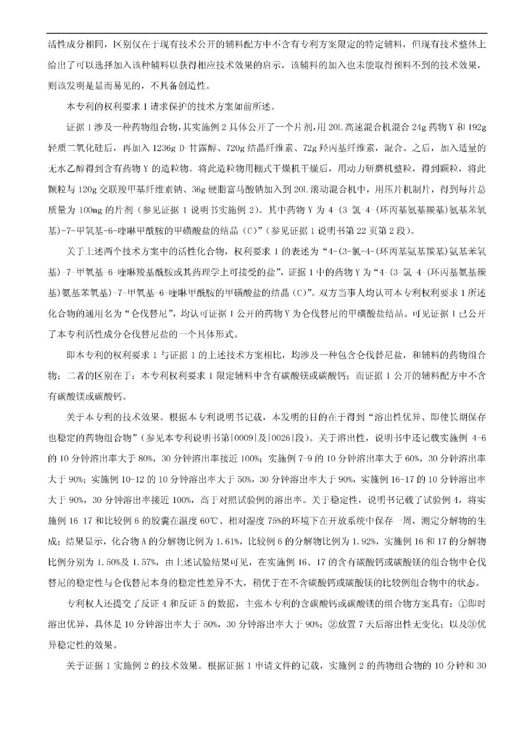 决定要点:对于开放式限定的药物制剂发明而言,如果专利保护的方案和最接近的现有技术相比,制剂类型相同,活性成分相同,区别在于现有的技术公开的辅料配方中不含有专利方案限定的该种辅料,但现有技术整体上给出了可以选择加入该种辅料以获得相应技术效果的启示,该辅料的加入也未能取得预料不到的技术效果,则该发明是显而易见的,不具备创造性。