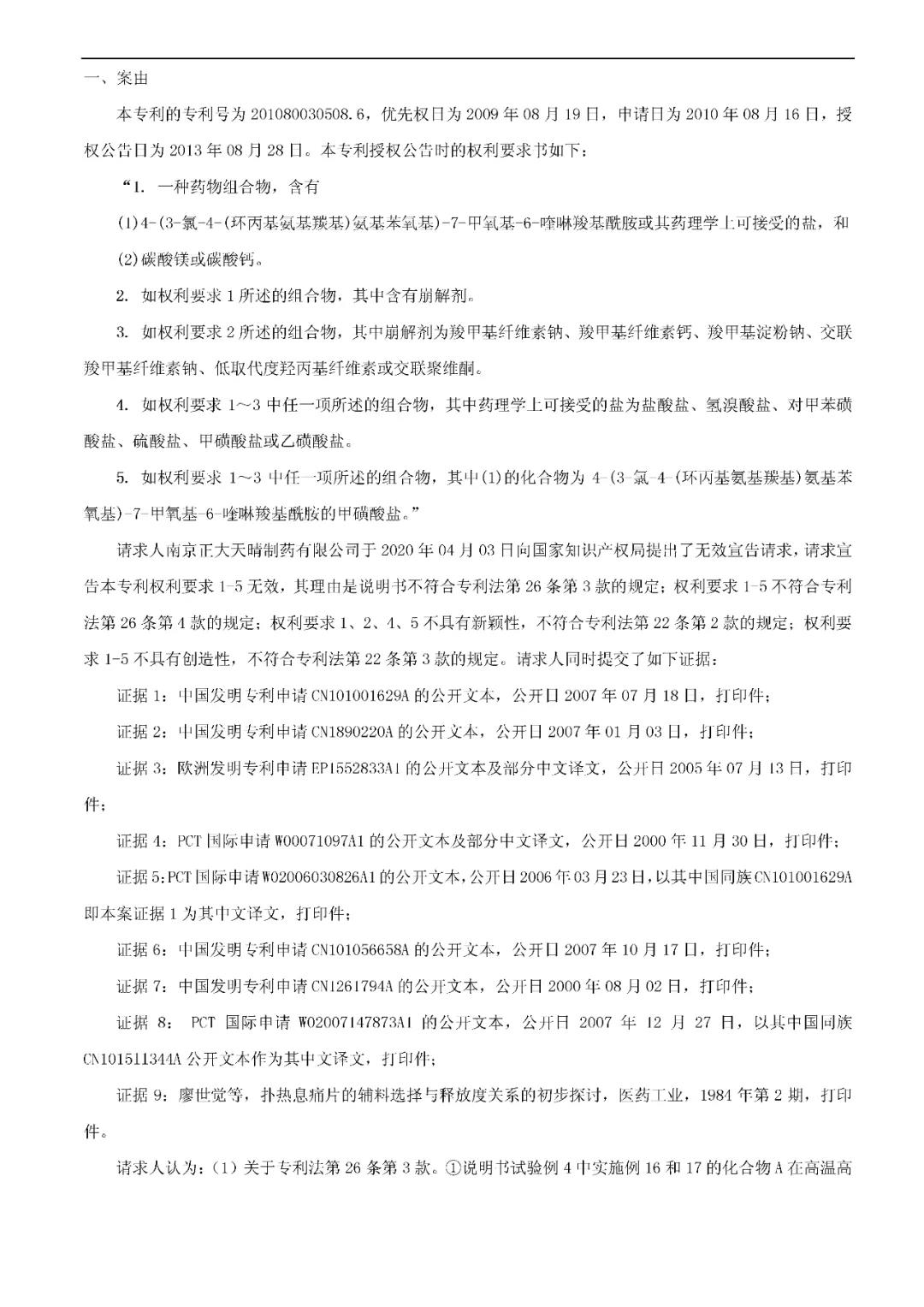无效宣告请求人:南京正大天晴制药有限公司