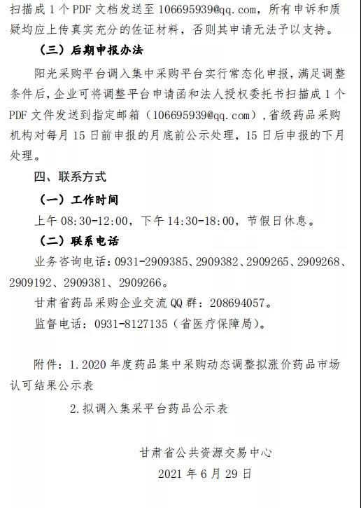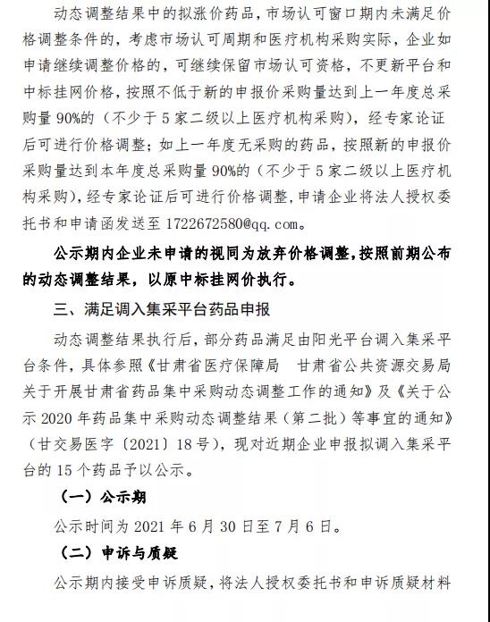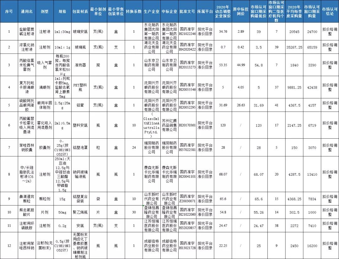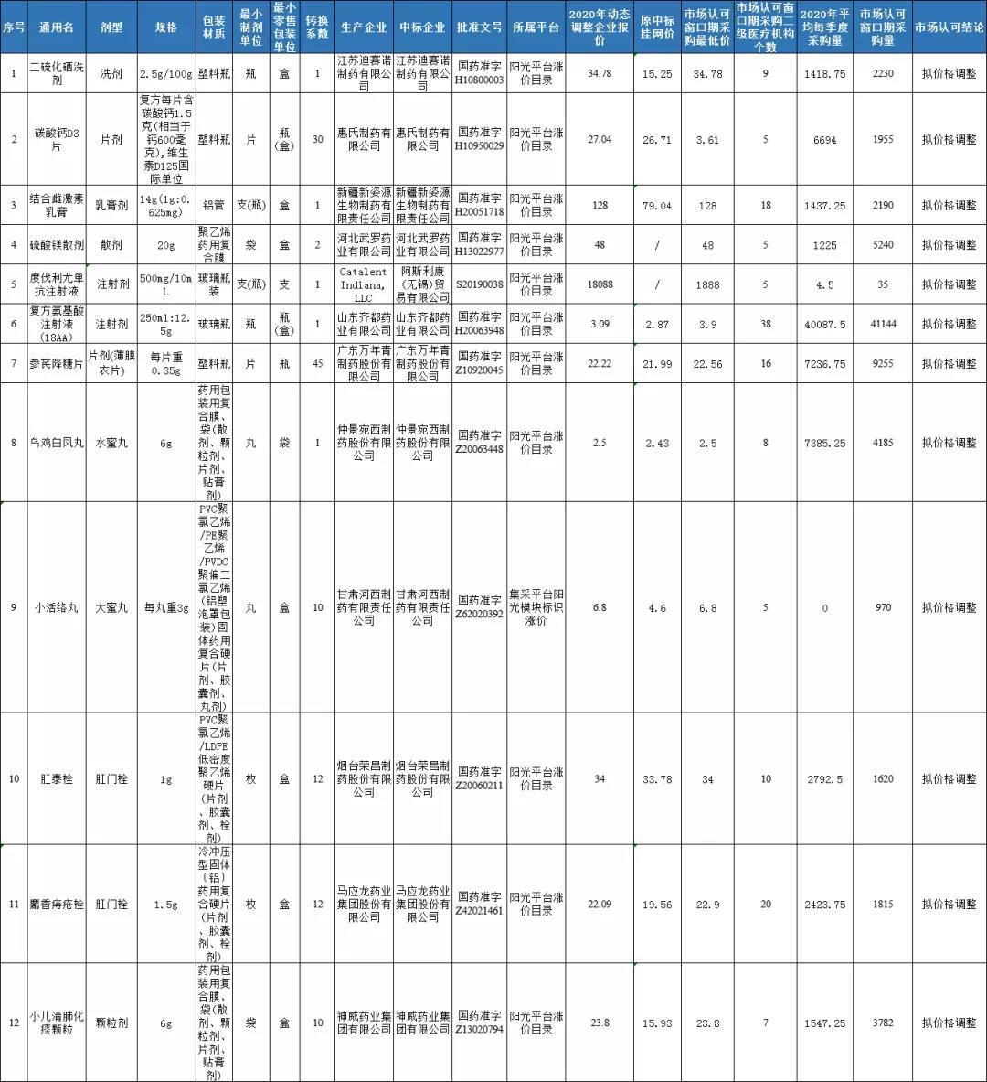 2020年度药品集中采购动态调整拟涨价药品市场认可结果公示表(第二批)