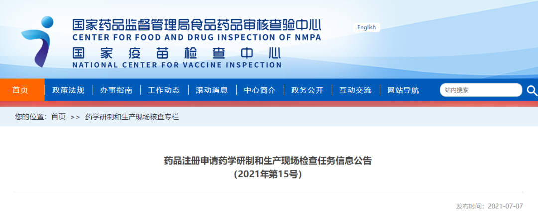 今天,CFDI更新了2个药品注册申请药学研制和生产现场核查任务信息公告,其中2021年第15号8个注册申请,第16号8个注册申请!