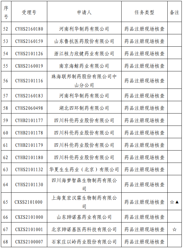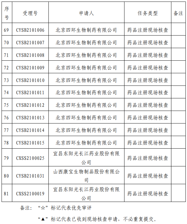 我中心已接收药品审评中心根据《药品注册管理办法》(市场监管总局令第27号)第48条规定启动的第十四批81个药品注册申请的药学研制和生产现场核查任务,相关任务信息现予以公告(详见附件)。
