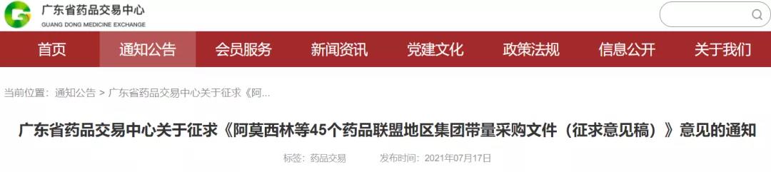 根据《广东省医疗保障局关于做好药品和医用耗材采购工作的指导意见》(粤医保规〔2020〕2号)等文件精神,按照相关工作要求,我中心起草了《阿莫西林等45个药品联盟地区集团带量采购文件(征求意见稿)》(见附件1),现向社会征求意见,相关事项如下: