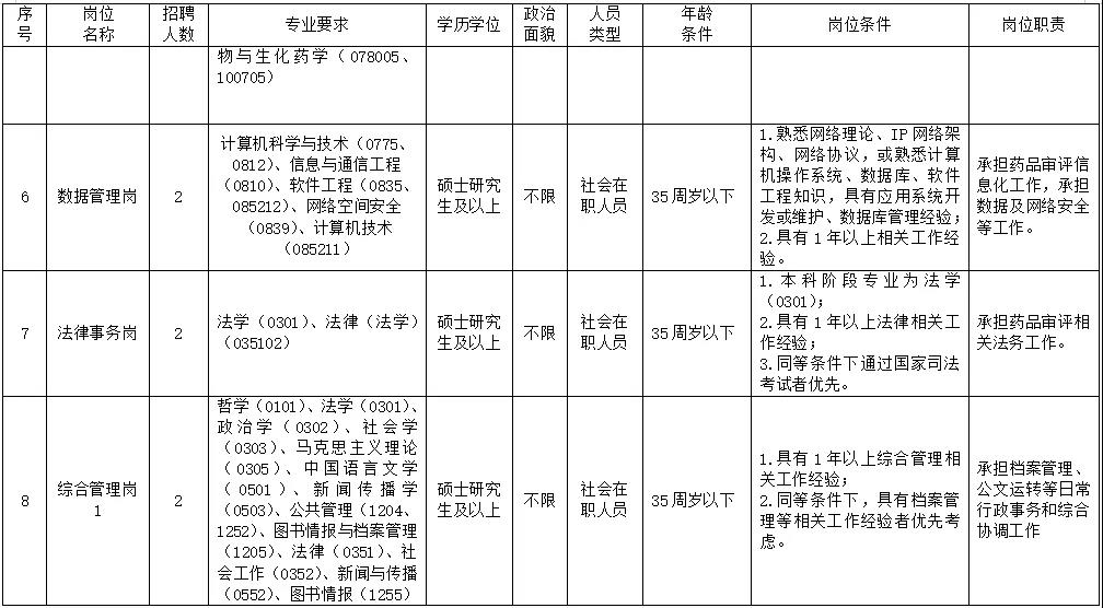 附件:国家药监局药品审评中心2021年度下半年聘用制人员公开招聘岗位信息表