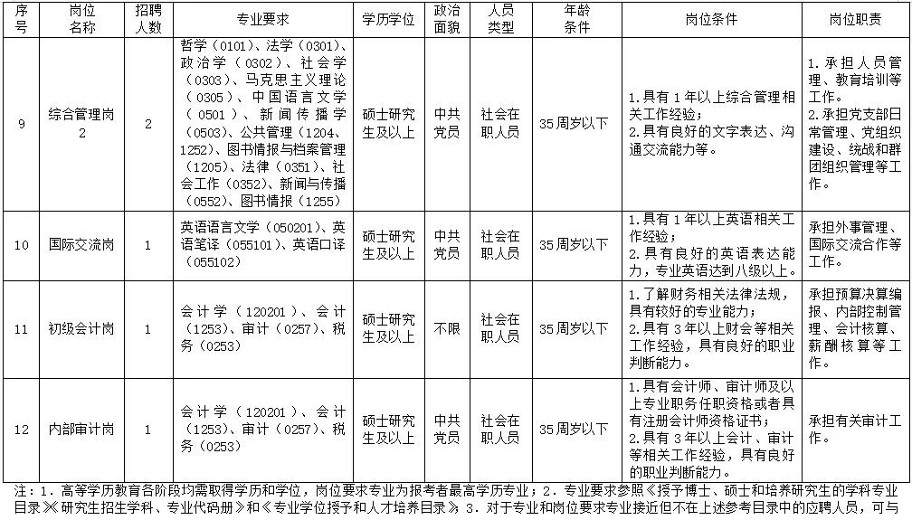 本次公开招聘对象为社会在职人员。社会在职人员应具备不少于1年的工作经验。有关工作年限要求详见岗位信息表,计算截止时间为2021年8月。
