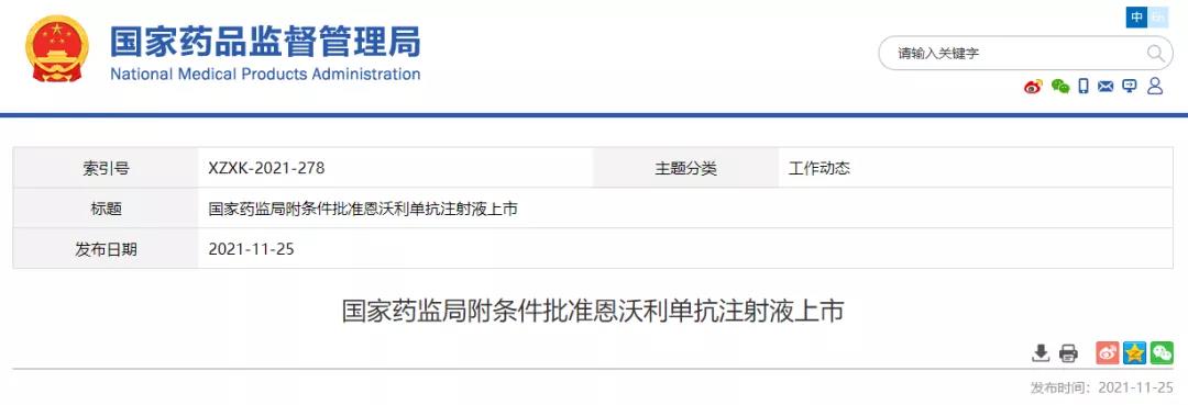 近日,国家药品监督管理局通过优先审评审批程序附条件批准四川思路康瑞药业有限公司申报的恩沃利单抗注射液(商品名:恩维达)上市。该药品为我国自主研发的创新PD-L1抗体药物,适用于不可切除或转移性微卫星高度不稳定(MSI-H)或错配修复基因缺陷型(dMMR)的成人晚期实体瘤患者的治疗,包括既往经过氟尿嘧啶类、奥沙利铂和伊立替康治疗后出现疾病进展的晚期结直肠癌患者以及既往治疗后出现疾病进展且无满意替代治疗方案的其他晚期实体瘤患者。