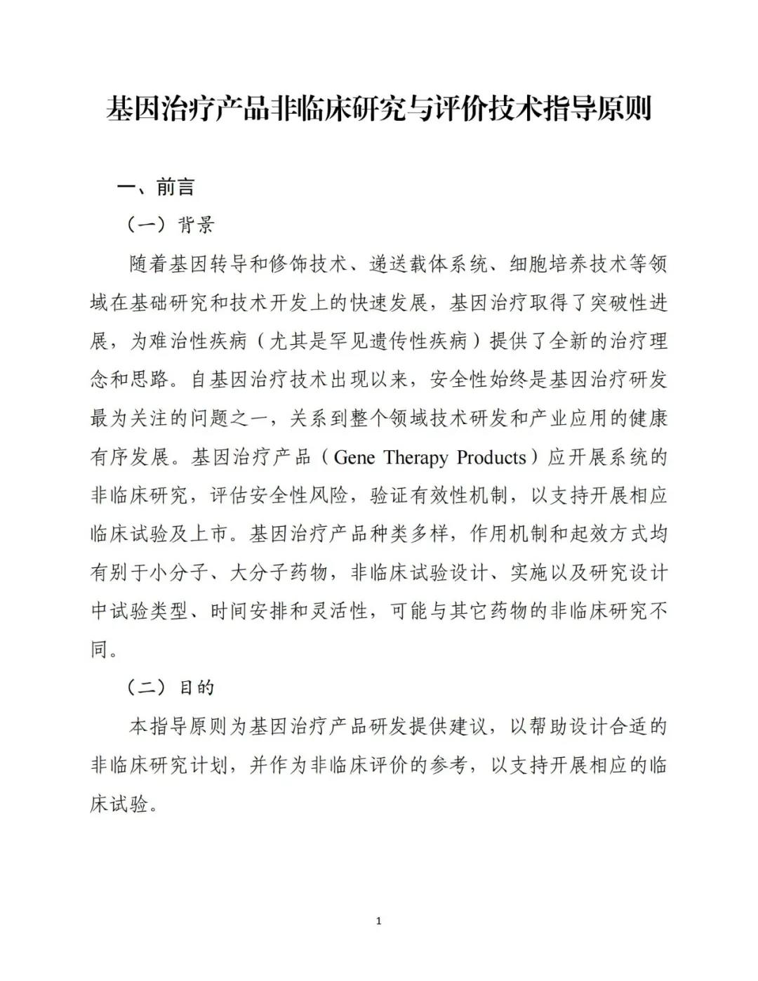 1.基因治疗产品非临床研究与评价技术指导原则(试行)