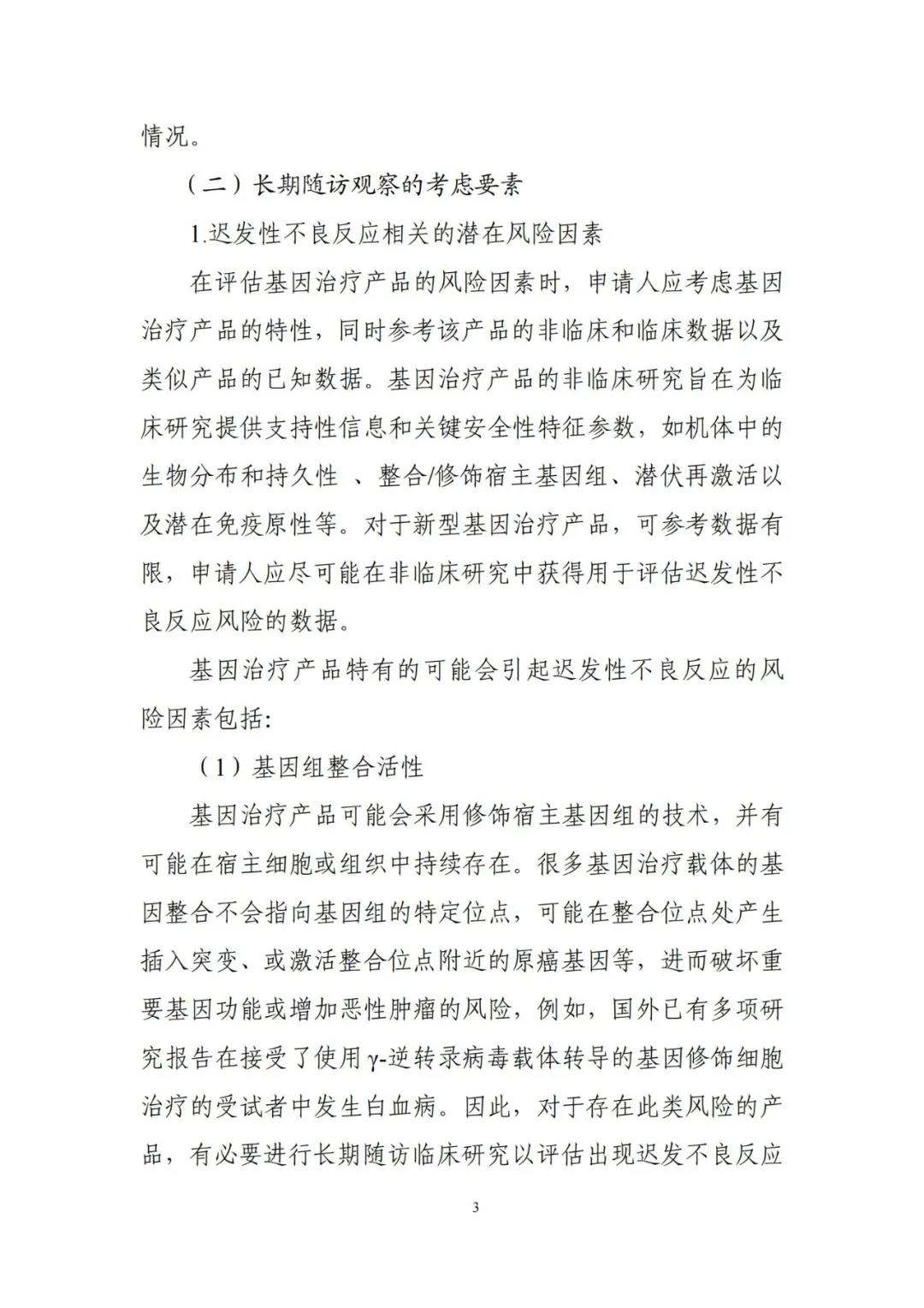 3. 基因治疗产品长期随访临床研究技术指导原则(试行)