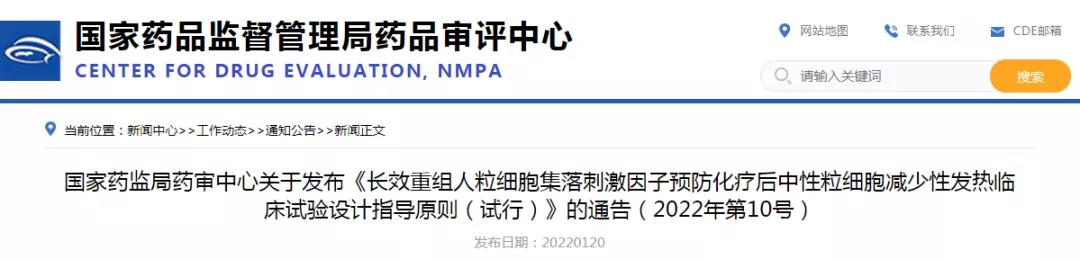 为鼓励新药研发,在国家药品监督管理局的部署下,药审中心组织制定了《长效重组人粒细胞集落刺激因子预防化疗后中性粒细胞减少性发热临床试验设计指导原则(试行)》(见附件)。根据《国家药监局综合司关于印发药品技术指导原则发布程序的通知》(药监综药管〔2020〕9号)要求,经国家药品监督管理局审查同意,现予发布,自发布之日起施行。
