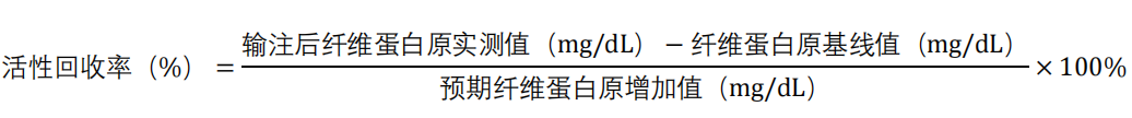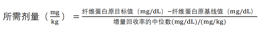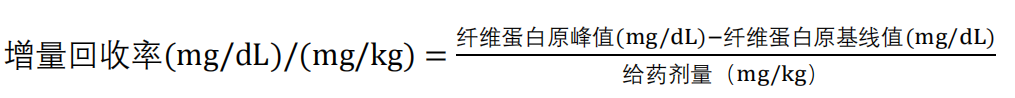 增量回收率,由输注结束后纤维蛋白原的峰值水平(cmax)计算得出,单位为[mg/dL]/[mg/kg],其计算方法如下: