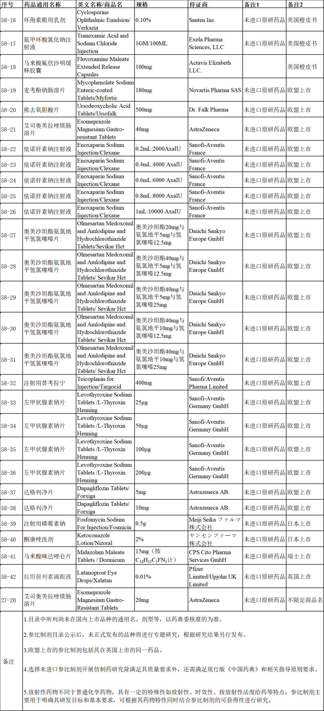 化学仿制药尚未发布参比制剂目录(第五十八批)(征求意见稿)