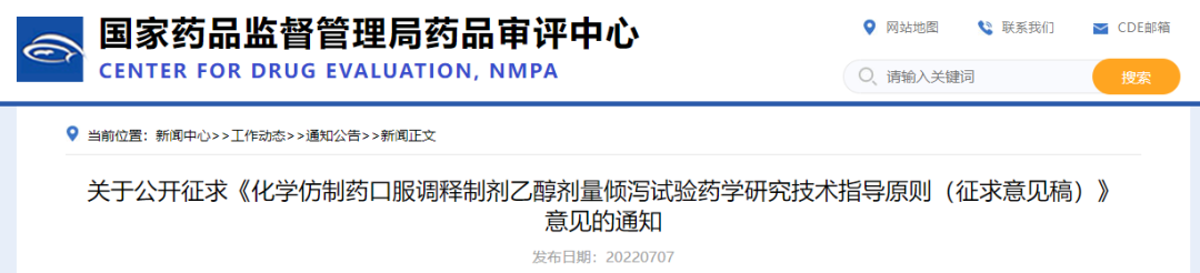 为进一步明确化学仿制药口服调释制剂乙醇剂量倾泻试验具体试验方法设计,以更好的指导企业进行研究以及统一监管要求,我中心经调研以及与专家和业界讨论,组织起草了《化学仿制药口服调释制剂乙醇剂量倾泻试验药学研究技术指导原则(征求意见稿)》。