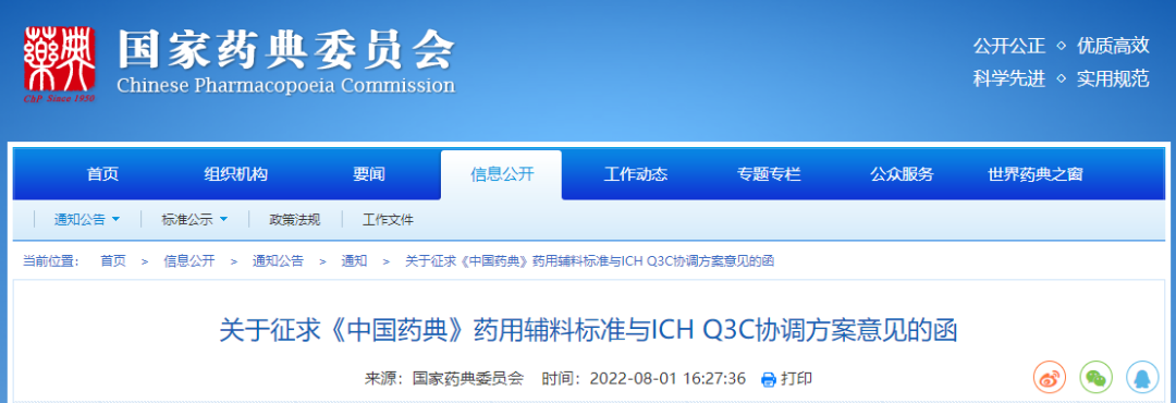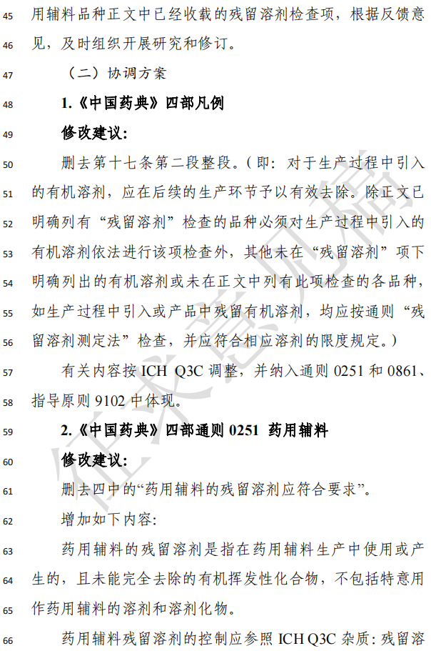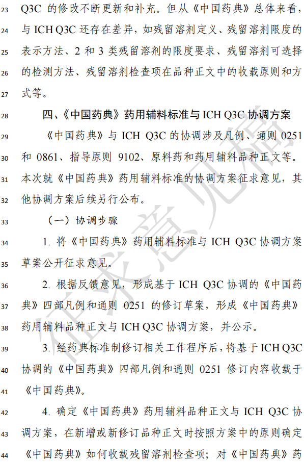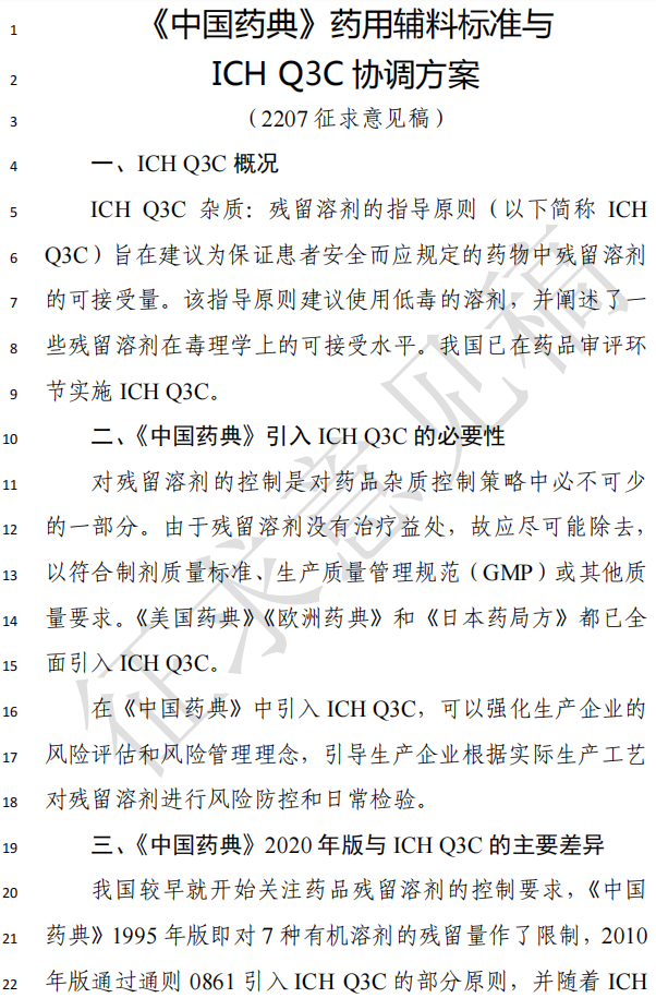 原文:关于征求《中国药典》药用辅料标准与ICH Q3C协调方案意见的函.pdf