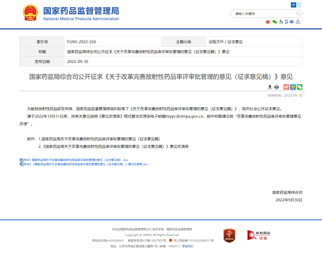 73周年国庆放假前最后一个工作日,国家药品监督管理局官网发布《关于改革完善放射性药品审评审批管理的意见》(征求意见稿),备受药界人士的关注,这是国家药监局为鼓励放射性药品研发申报,推动放射性药品高质量发展,而准备深化审评审批制度改革,比较系统地回答了在新体制机制下,未来放射性药品怎么审评审批管理改革管理的问题,本文对新政策内容进行了分析。