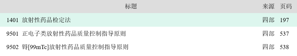 (5) 2020年版《中国药典》与放射性药品相关的有三个相关指导原则分别是: