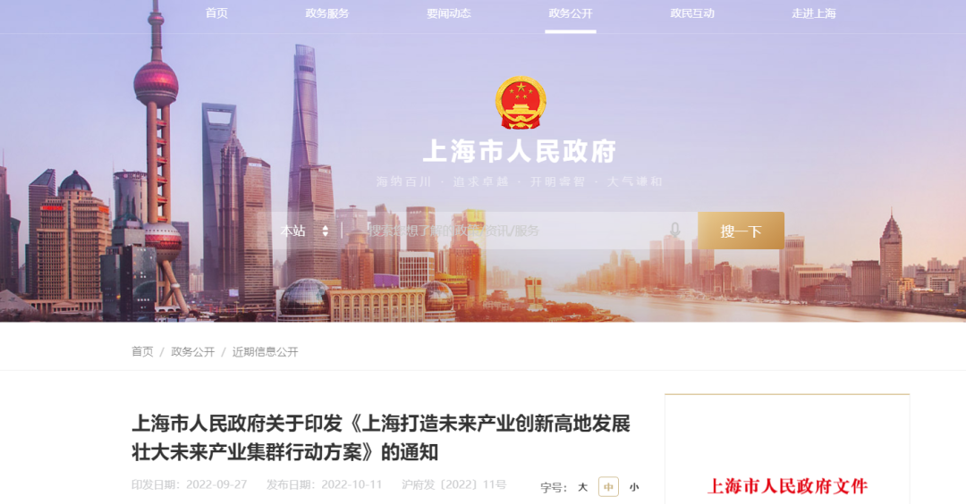 上海市人民政府关于印发《上海打造未来产业创新高地发展壮大未来产业集群行动方案》的通知