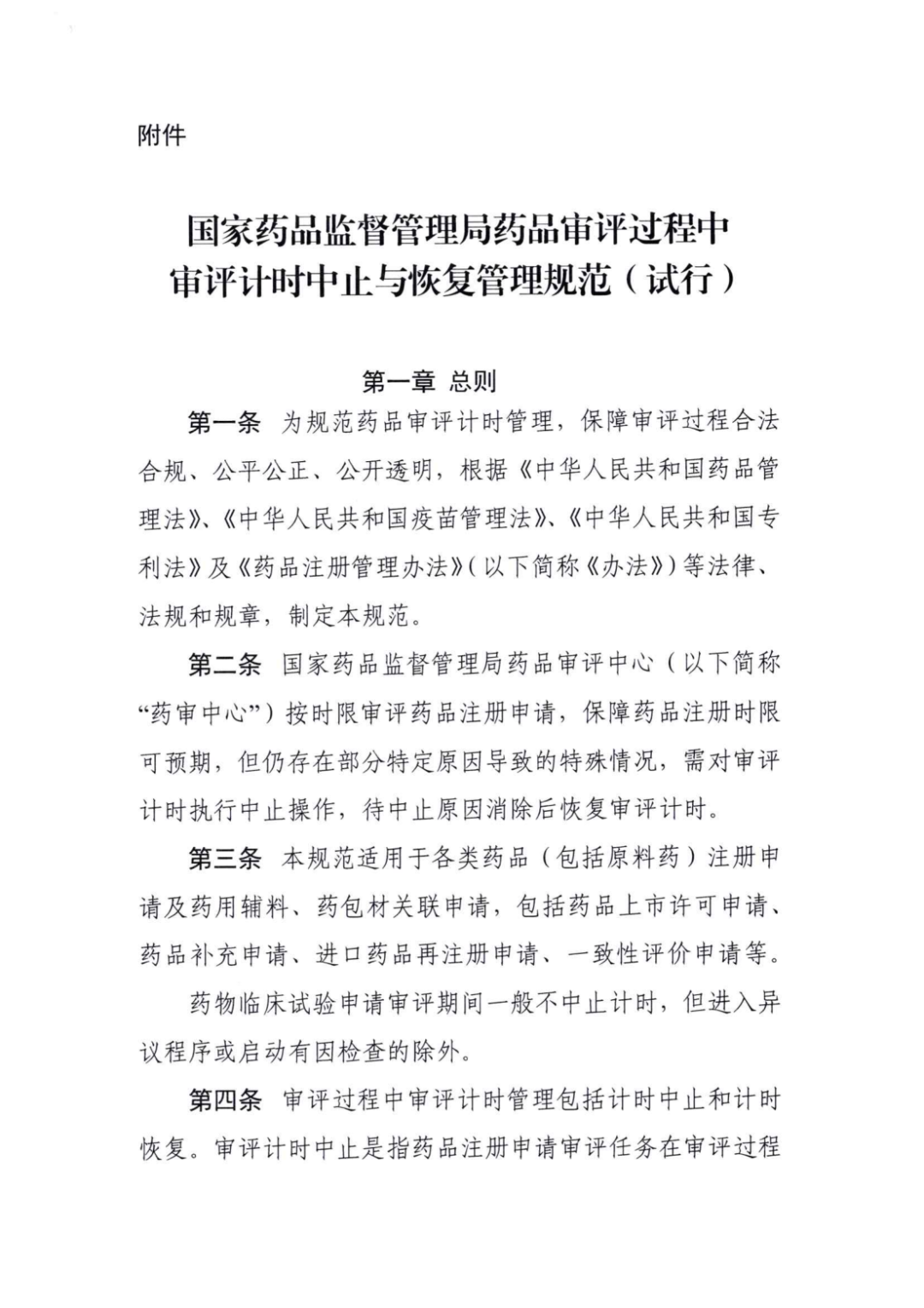 附件:国家药品监督管理局药品审评过程中审评计时中止与恢复管理规范(试行)