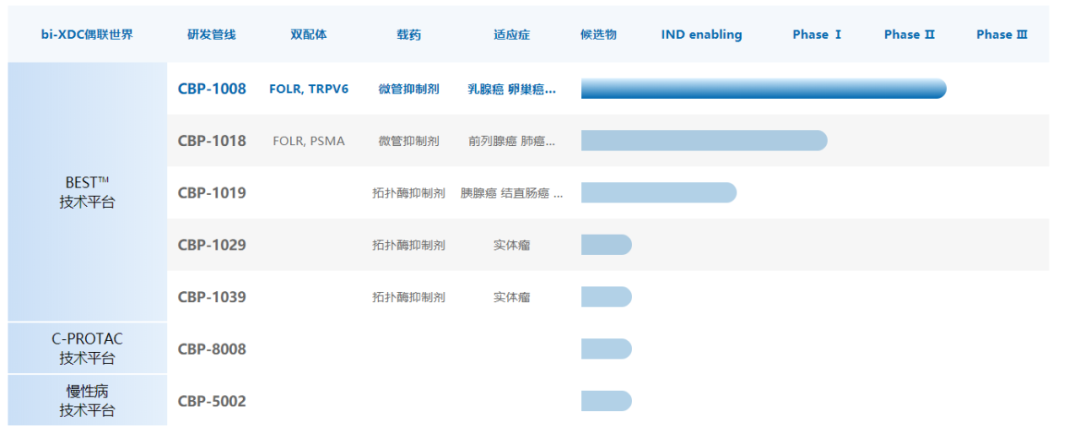 其次是同宜医药,凭借核心技术平台BESTTM开发出的PDC多肽偶联药物CBP-1008,目前正在进行II期临床试验。