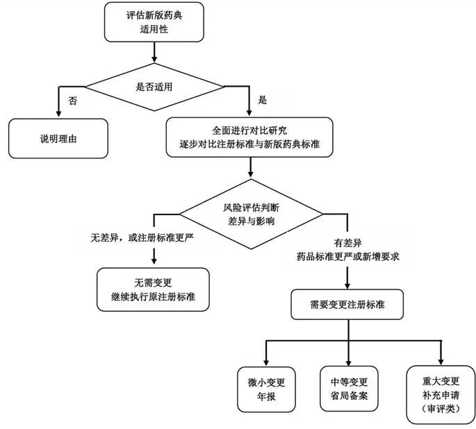 无差距或本身的标准更严,如果仅是注册标准≥新版药典标准,则无需变更,继续执行原标准。有差距,制定变更计划。
