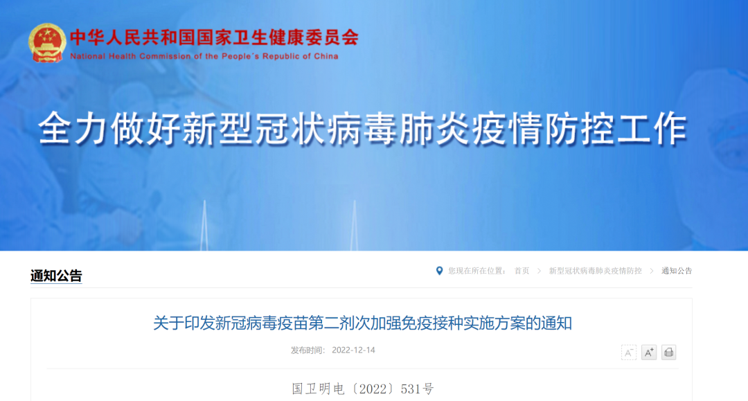 关于印发新冠病毒疫苗第二剂次加强免疫接种实施方案的通知 (nhc.gov.cn),http://www.nhc.gov.cn/xcs/zhengcwj/202212/acd8ba68d934488983909e81642dc337.shtml