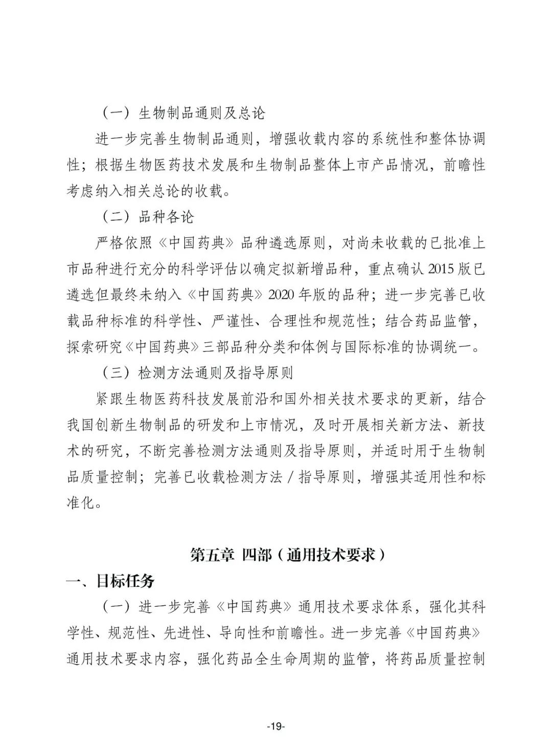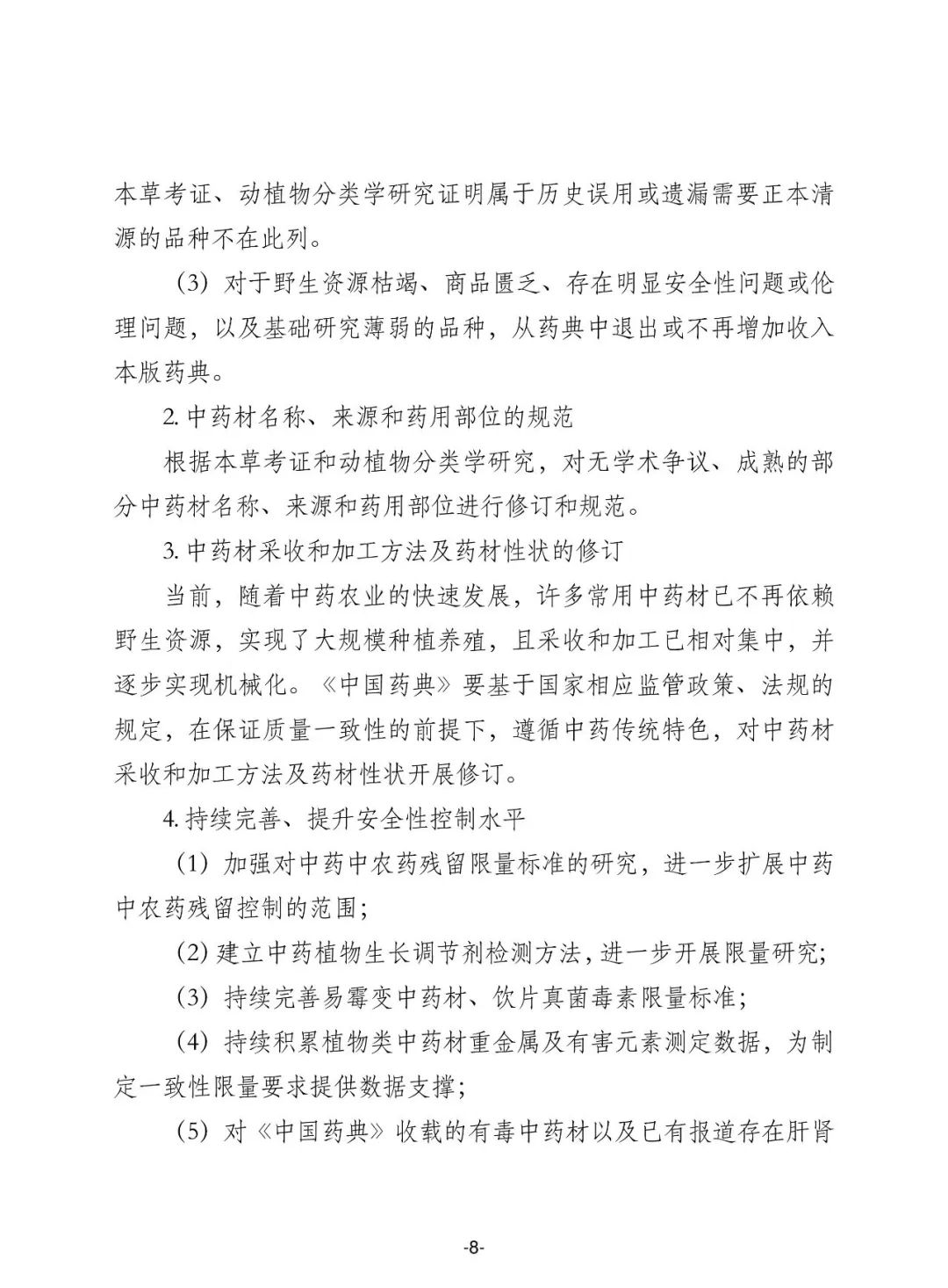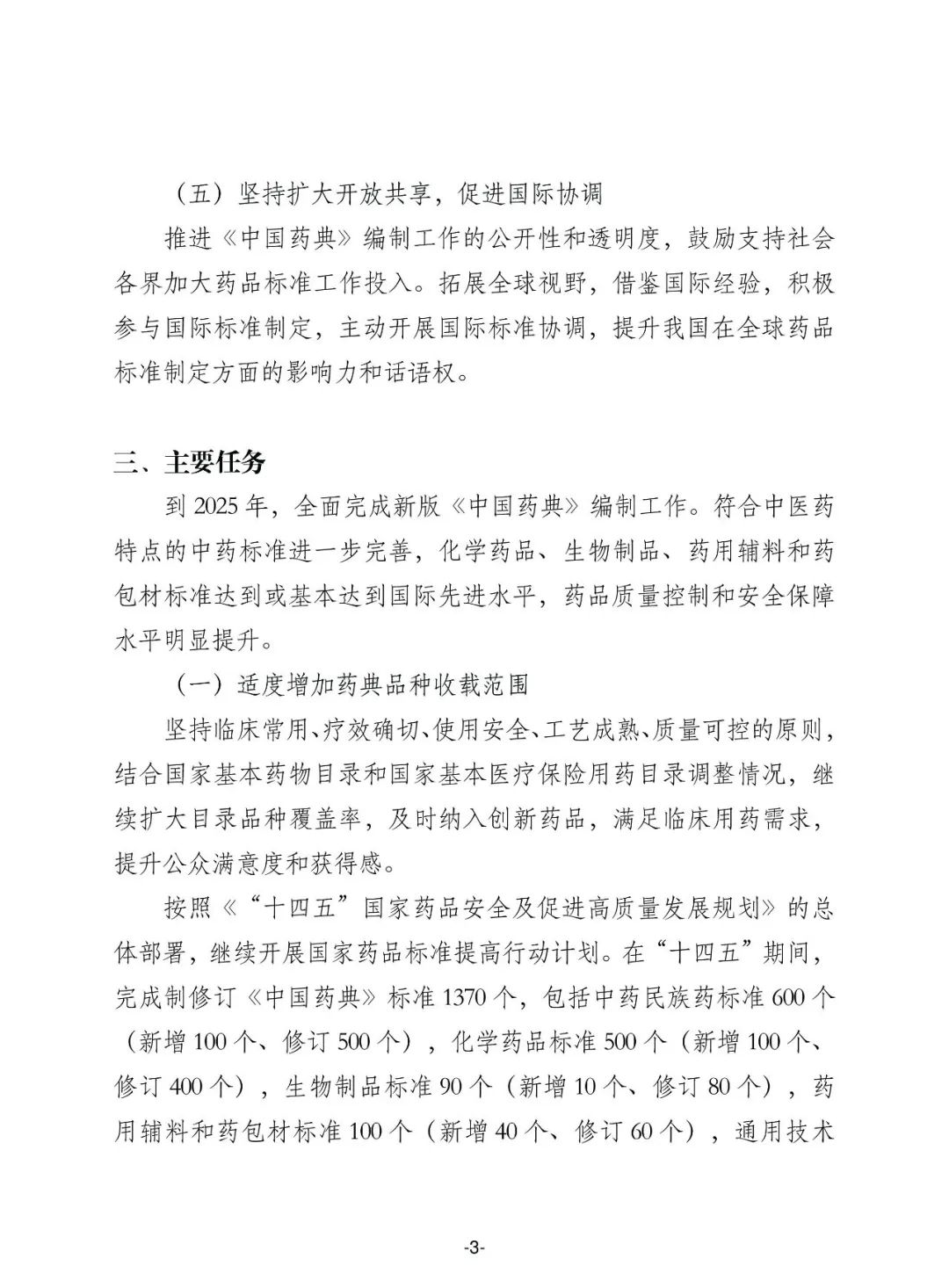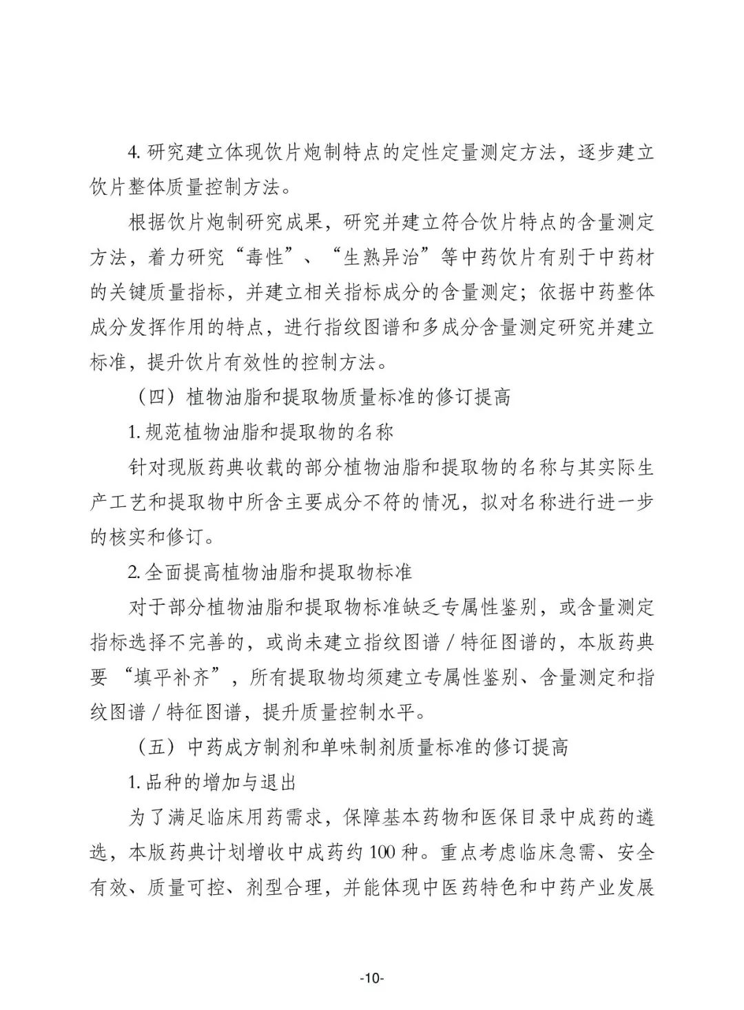 (一) 适度增加药典品种收载范围,坚持临床常用、疗效确切、使用安全、工艺成熟、质量可控的原则,结合国家基本药物目录和国家基本医疗保险用药目录调整情况,继续扩大目录品种覆盖率,及时纳入创新药品。