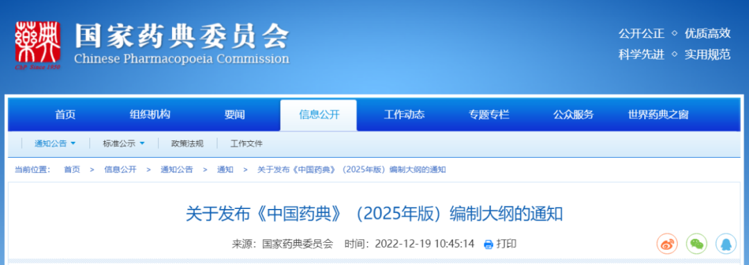 12月19日,国家药典委正式发布《中国药典》(2025年版)编制大纲。