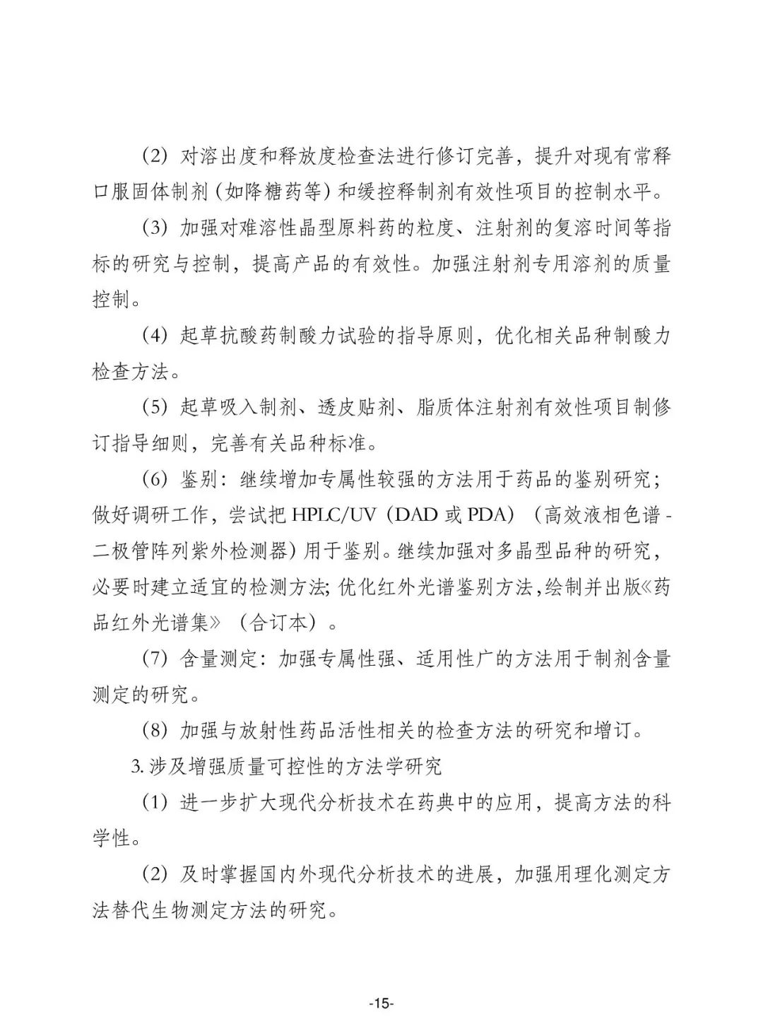 (三) 健全药品标准体系,加强药品研发、生产、 流通、使用、监管等各个环节的全过程的质量控制。为鼓励创新药审评、仿制药质量和疗效一致性评价以及关联审评审批制度改革等提供技术支撑。