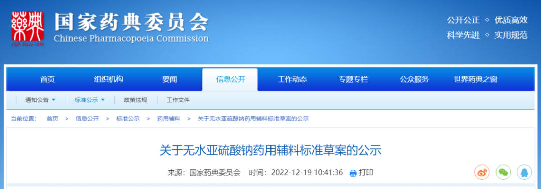 我委拟修订无水亚硫酸钠药用辅料标准,为确保标准的科学性、合理性和适用性,现将拟修订的药用辅料标准公示征求社会各界意见(详见附件)。公示期自发布之日起3个月。请认真研核,若有异议,请及时来函提交反馈意见,并附相关说明、实验数据和联系方式。相关单位来函需加盖公章,个人来函需本人签名,同时将电子版发送至指定邮箱。