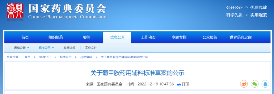 我委拟修订葡甲胺药用辅料标准,为确保标准的科学性、合理性和适用性,现将拟修订的药用辅料标准公示征求社会各界意见(详见附件)。公示期自发布之日起3个月。请认真研核,若有异议,请及时来函提交反馈意见,并附相关说明、实验数据和联系方式。相关单位来函需加盖公章,个人来函需本人签名,同时将电子版发送至指定邮箱。