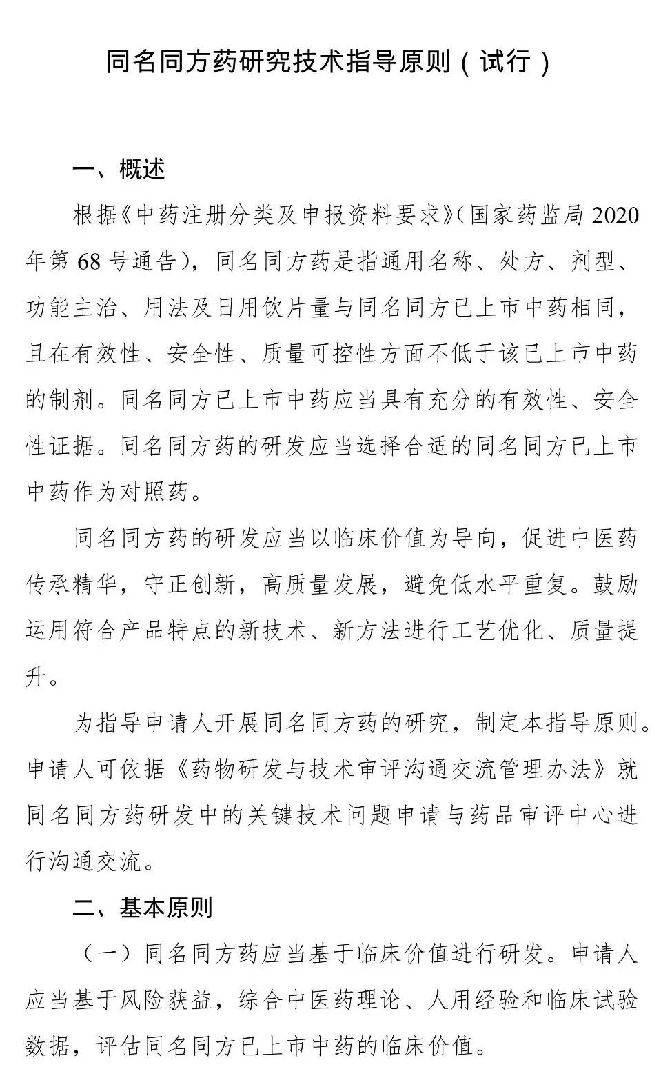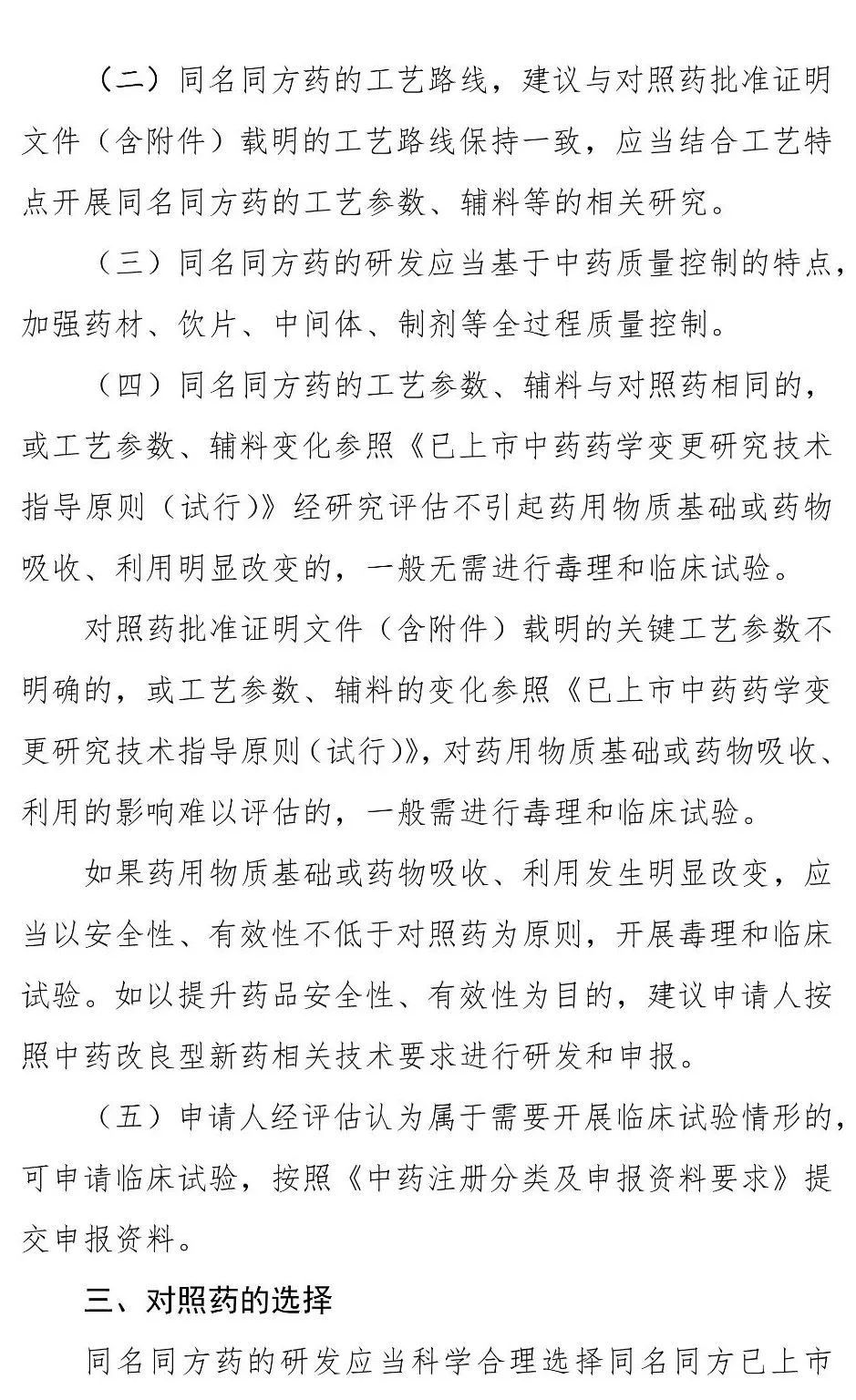 在国家药品监督管理局的部署下,药审中心组织制定了《同名同方药研究技术指导原则(试行)》(见附件)。
