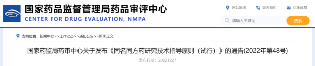 12月27日,CDE发布《同名同方药研究技术指导原则(试行)》的通告。