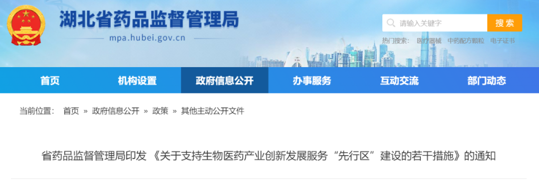 1月31日晚,湖北省药监局发布《关于支持生物医药产业创新发展服务“先行区”建设的若干措施》。