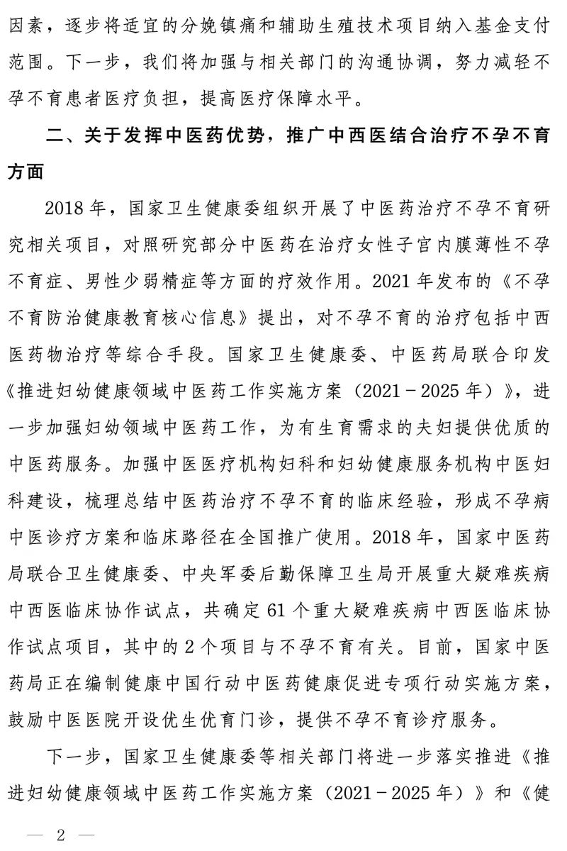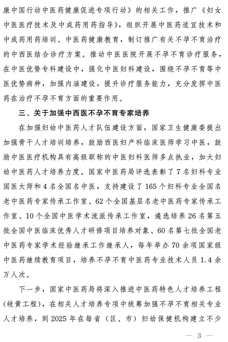 同时,国家卫健委将组织开展了中医药治疗不孕不育研究相关项目,推广中西医结合治疗不孕不育。