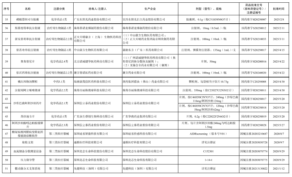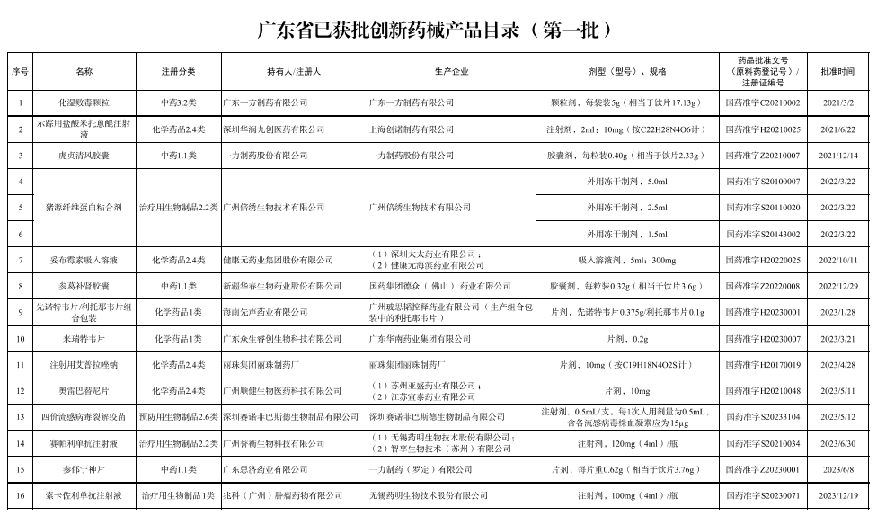附:《广东省已获批创新药械产品目录(第一批)》