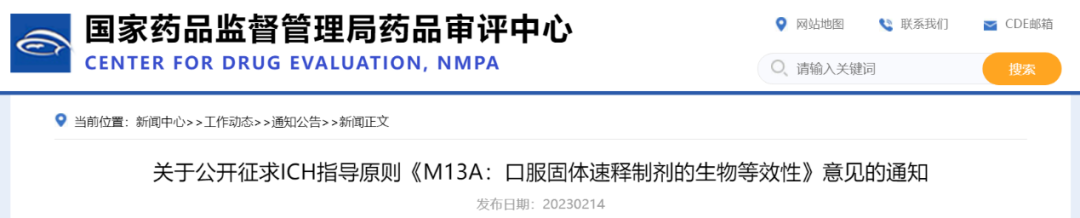 《M13A:口服固体速释制剂的生物等效性》(征求意见)