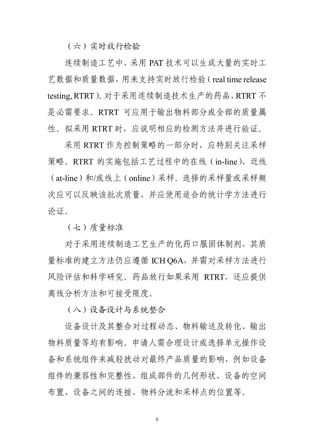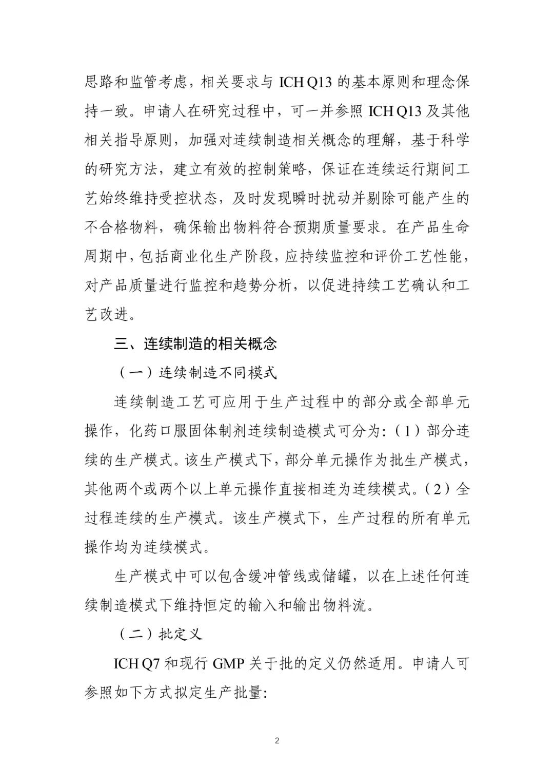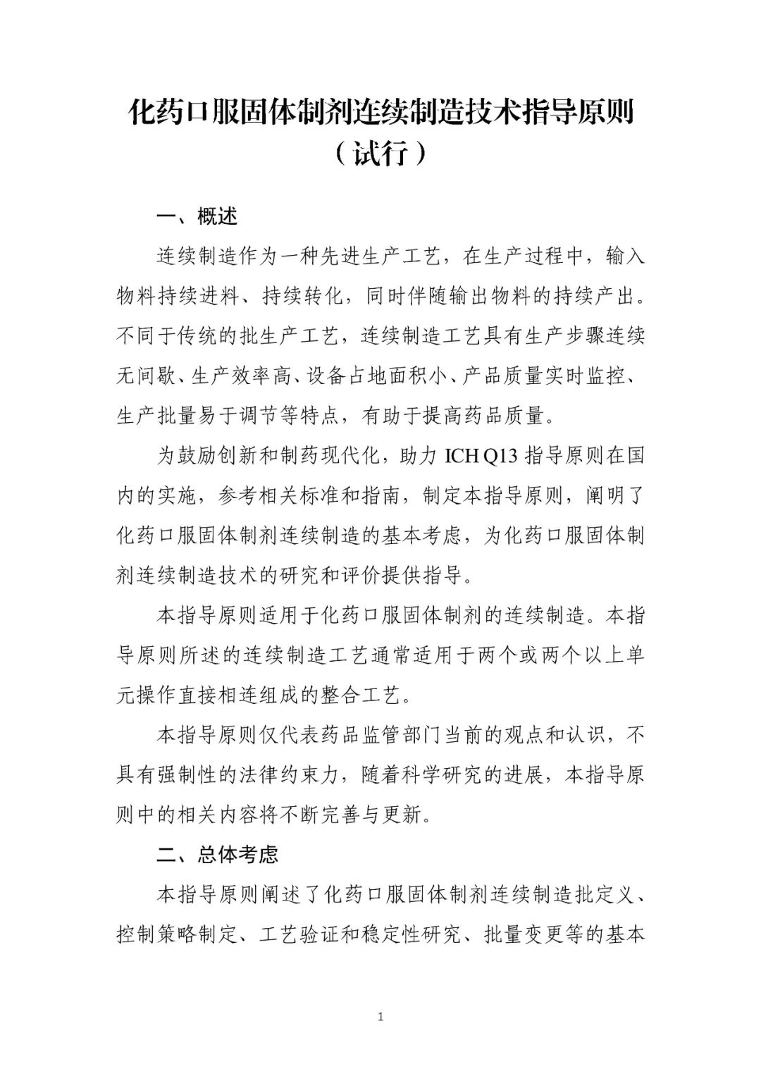 《化药口服固体制剂连续制造技术指导原则(试行)》