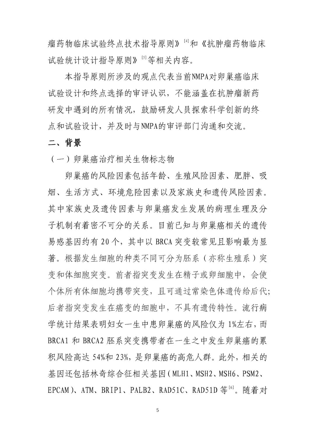 《治疗卵巢癌新药临床研发技术指导原则(试行)》