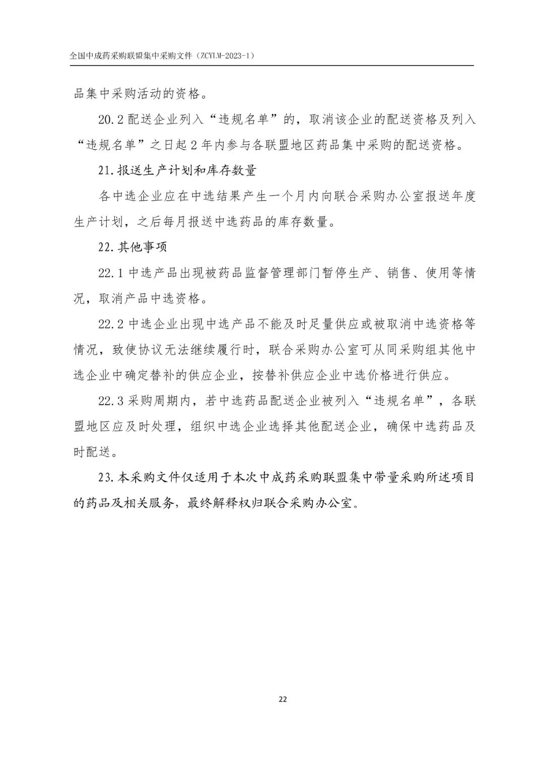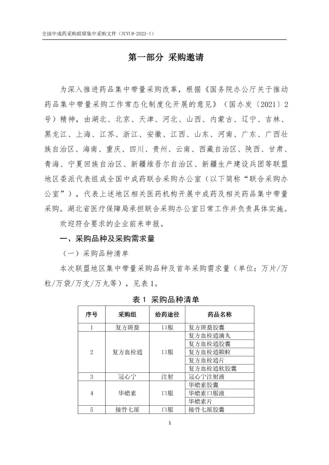 为贯彻落实《国务院办公厅关于推动药品集中带量采购工作常态化制度化开展的意见》(国办发〔2021〕2号)精神,进一步推进中成药联盟采购工作,在国家医保局的指导下,结合中成药联盟采购工作实践,研究起草了《全国中成药采购联盟集中采购文件(征求意见稿)》,现向社会公开征求意见,请于2023年3月30日17时前,将意见建议发至联合采购办公室。电子邮箱:zcylcbgs@163.com 联系电话:027-87265910 027-87265911 通讯地址:武汉市武昌区中北路101号海山金谷16楼1604室 邮编:430071 附件:《全国中成药采购联盟集中采购文件(征求意见稿)》