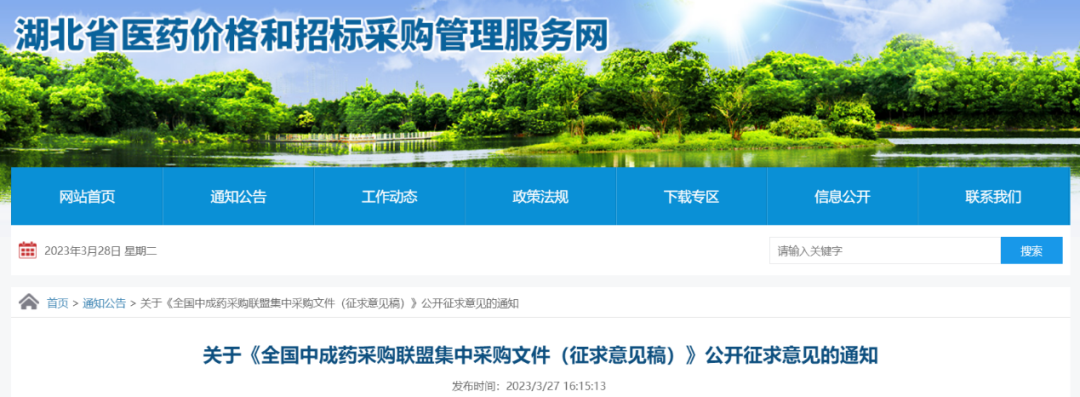 3月27日,全国中成药联合采购办公室发布《全国中成药采购联盟集中采购文件(征求意见稿)》。