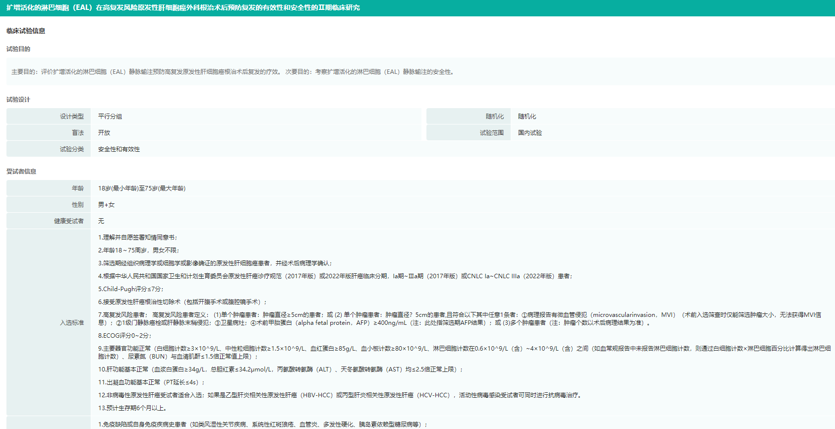 EALⅡ期临床试验信息(部分)