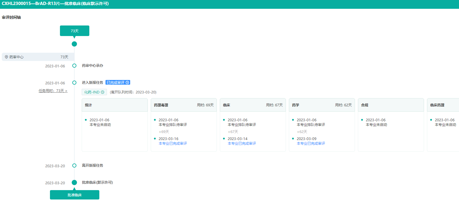 BrAD-R13片审评时间轴(获批临床耗时73天)