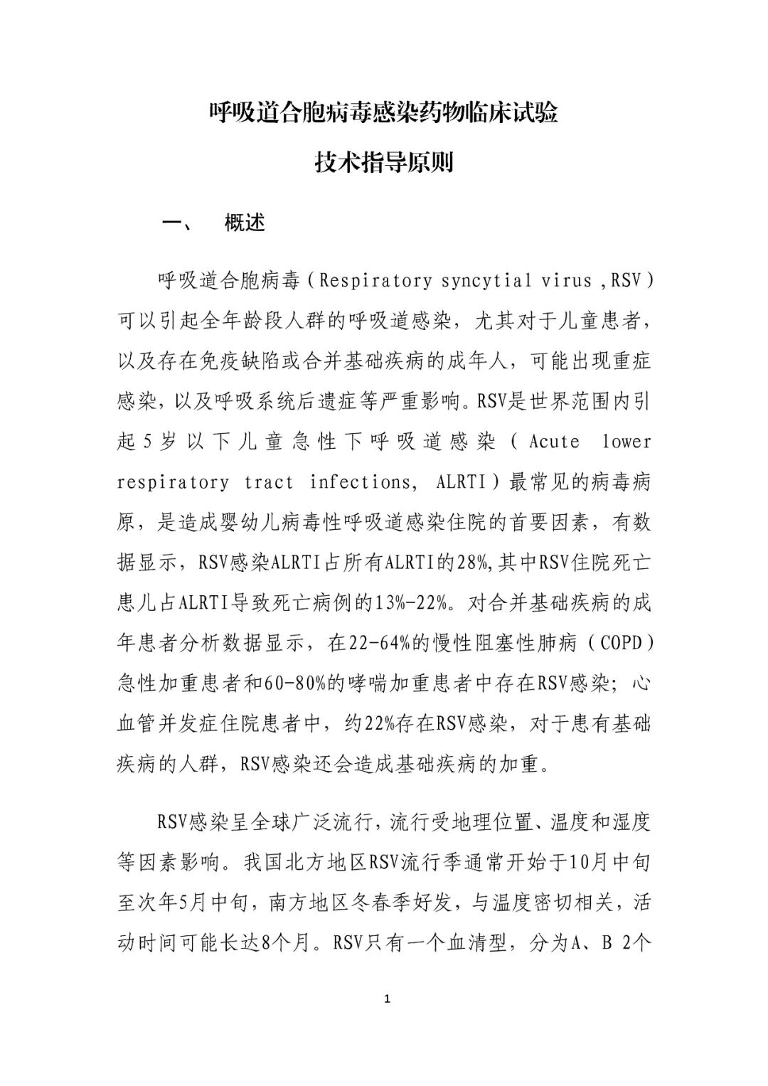 《呼吸道合胞病毒感染药物临床试验技术指导原则》
